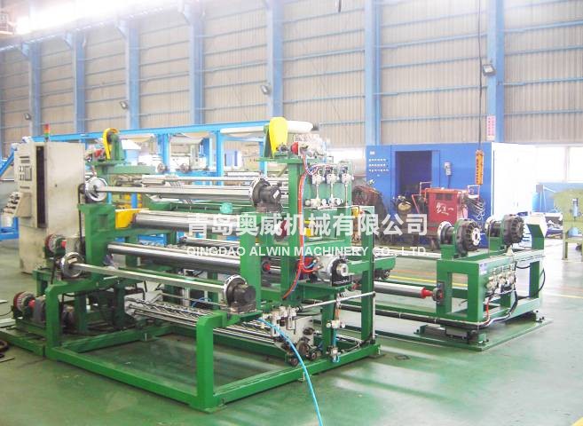 多刀縱裁機用于將壓延后的掛膠纖維簾布或膠片縱向裁切。該設備采用新的結構設計,使整機結構緊湊、可靠、工作效率高;拆裝方便,易于調寬;裁刀壓力、縱切速度可隨意調整;導開、卷取張力可根據(jù)材料的特性進行調整,料卷自動糾偏;實現(xiàn)廢邊膠料與墊布的自動分離、收集;電汲氣動元件采用知名廠家,保證了設備運轉的可靠性。該設備主要由導開裝置、自動糾偏裝置、裁切裝置、卷取裝置等機構構成。
